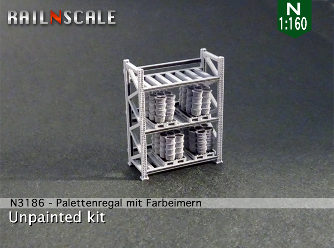 Palettenregal mit Farbeimern