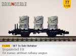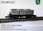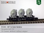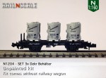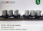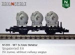 – N1207/N1707: Diese Behälter können direkt auf einem Fleischmann Wagen montiert werden. Mit einem ebenso mitgedruckten Adapter-Stäbchen können die Behälter mühelos auch auf einem Minitrix Wagen platziert werden.