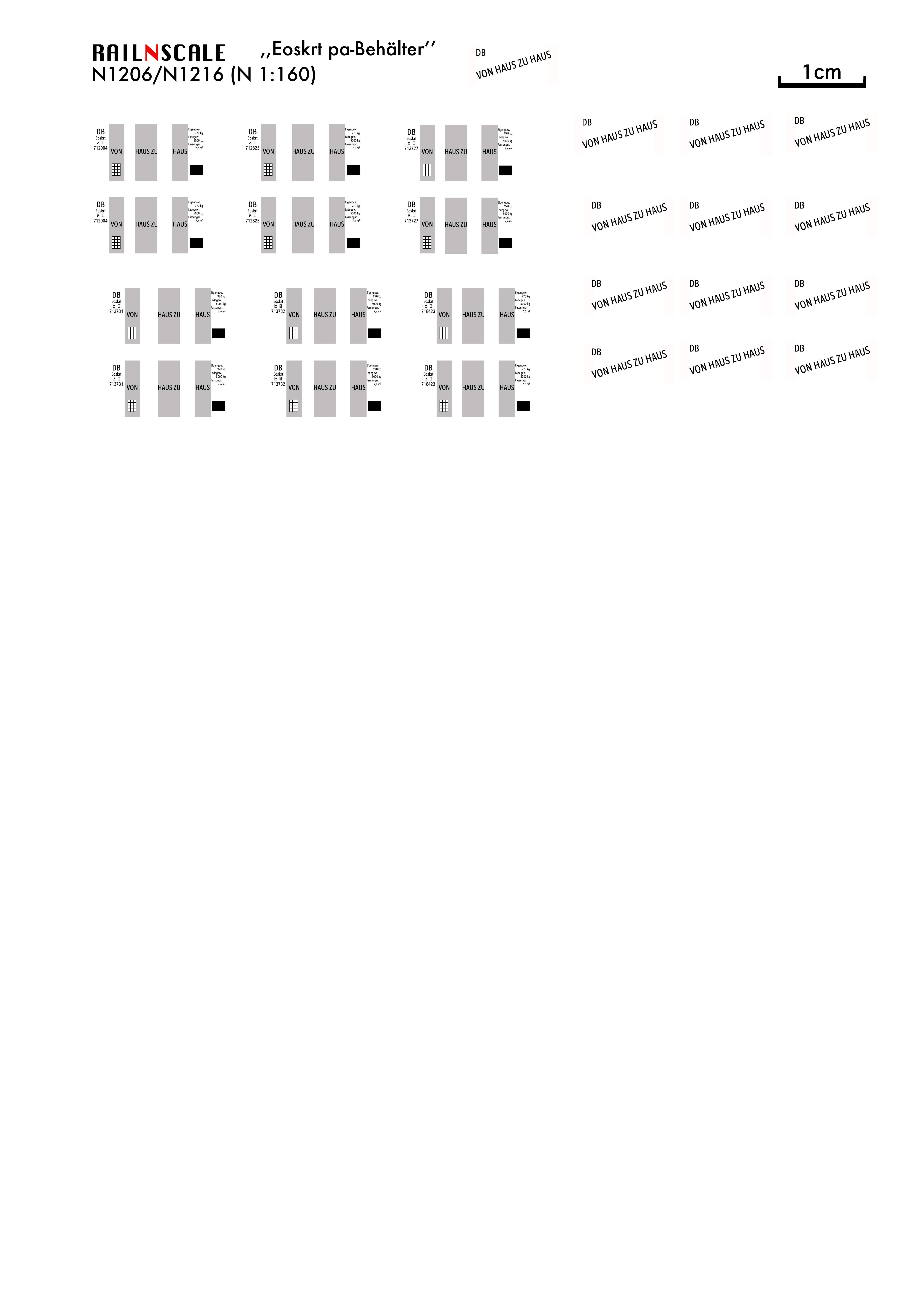 – N1207/N1707: Deze containers kunnen rechtstreeks op Fleischmann-containerwagens worden gemonteerd. Met de meegeleverde adapter-staven kunnen de containers eenvoudig worden geplaatst op Minitrix-wagens.