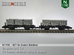 – N1207/N1707: Ces conteneurs peuvent être montés directement sur un des chariots Fleischmann. Avec les barres d’adaptateur inclus les conteneurs peuvent également être placés sur des wagons Minitrix.
